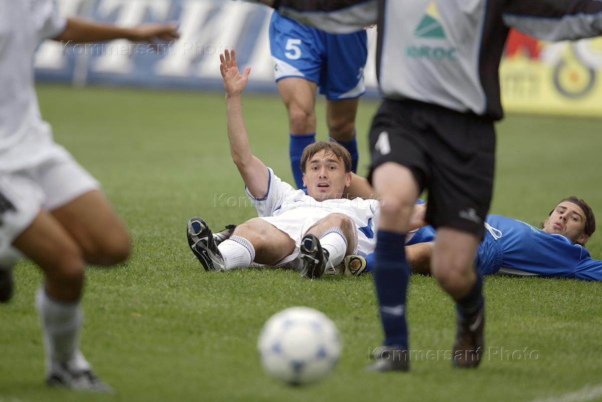 Футболисты Радослав Батак "Динамо" (слева) и Алексей Медведев "Сатурн REN-TV" (справа) во время матча премьер-лиги "Динамо" - "Сатурн REN-TV". Матч прошел на стадионе "Сатурн" в Раменском.