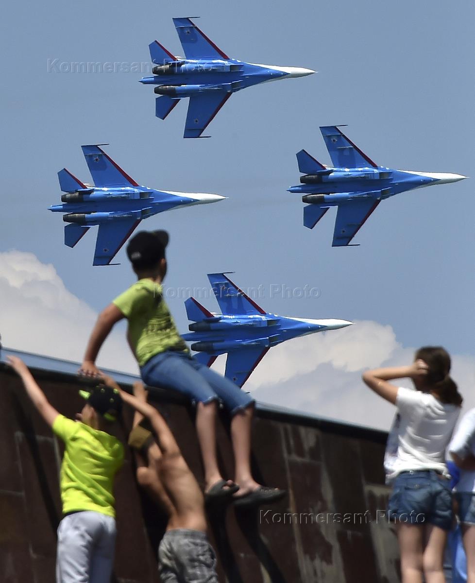 Церемония закрытия Всероссийского этапа конкурса летной выучки "Авиадартс-2016" прошла в Севастополе на площади Нахимова. В авиашоу выступили российские авиационные группы высшего пилотаж.