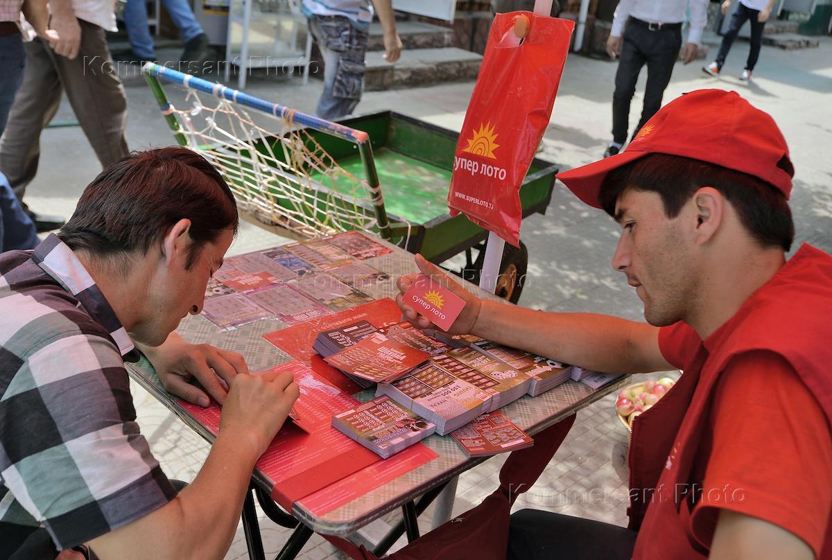 Виды Душанбе. Мужчины играют в шашки на одной из улиц города.