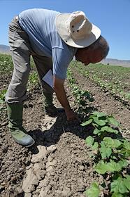 Жанровая фотография. Мужчина у колодца с водой на хлопковом поле.
