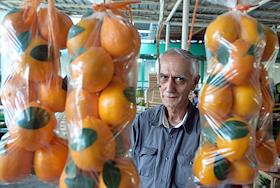 Продавец цитрусовыми на "Зеленом базаре" города.