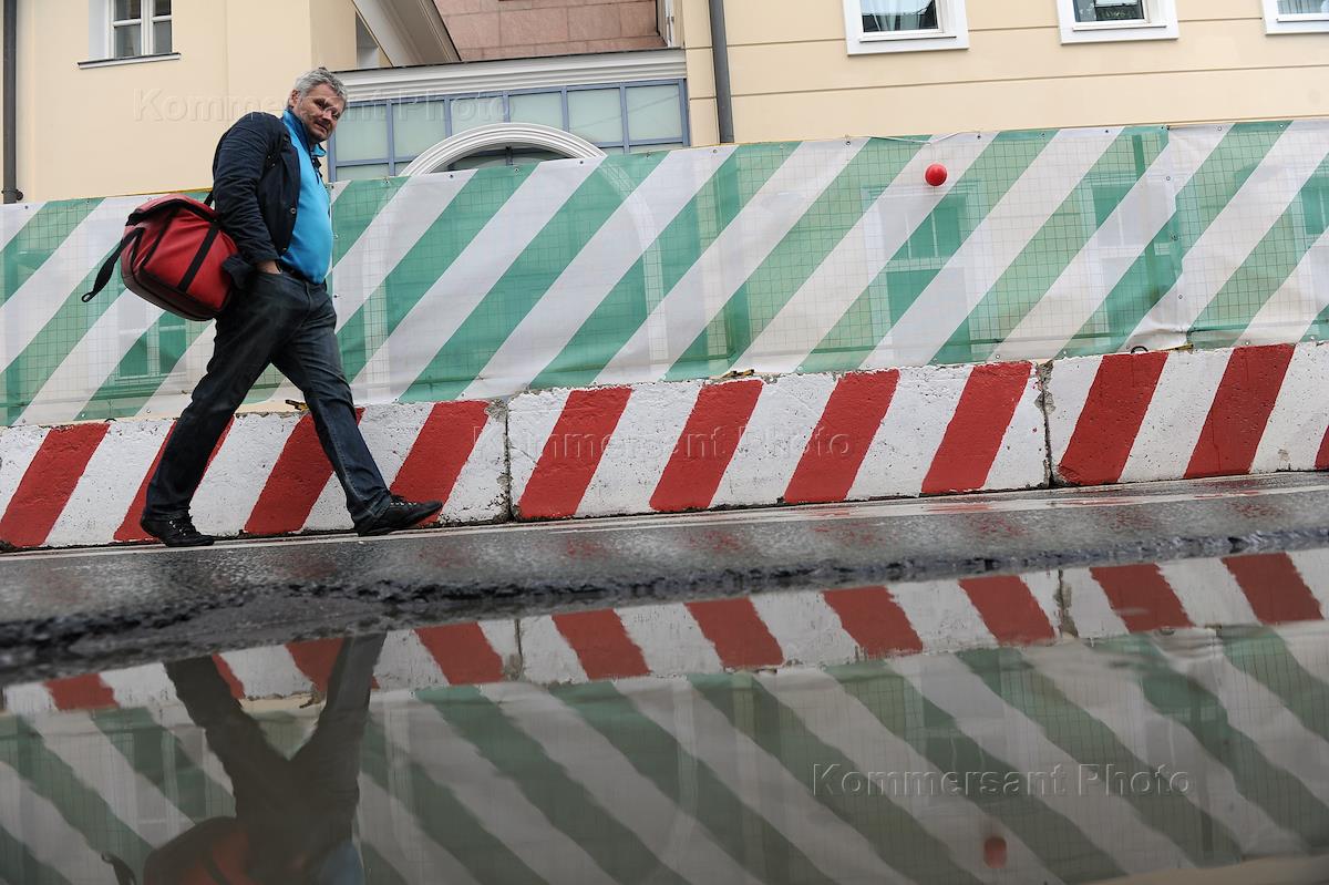 Прохожий во время реконструкции и благоустройства улиц Москвы в рамках программы "Моя улица".