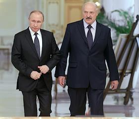 Рабочая поездка президента России Владимира Путина в Минск. Президент России Владимир Путин (слева) и президент Белоруссии Александр Лукашенко (справа) перед началом российско-белорусских переговоров в Минске.