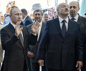 Рабочая поездка президента России Владимира Путина в Минск. Президент России Владимир Путин (слева) и президент Белоруссии Александр Лукашенко (справа) на выставке "БЕЛАГРО-2016".