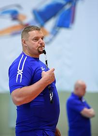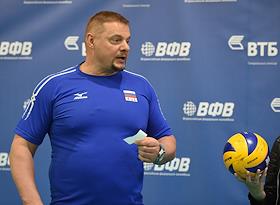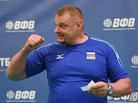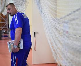Открытая тренировка мужской сборной России по волейболу прошла в рамках пресс-тура для журналистов в УТЦ "Новогорск". Главный тренер сборной России по волейболу Владимир Алекно во время тренировки.