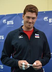 Открытая тренировка мужской сборной России по волейболу прошла в рамках пресс-тура для журналистов в УТЦ "Новогорск". Игрок сборной России по волейболу Дмитрий Мусэрский во время тренировки.