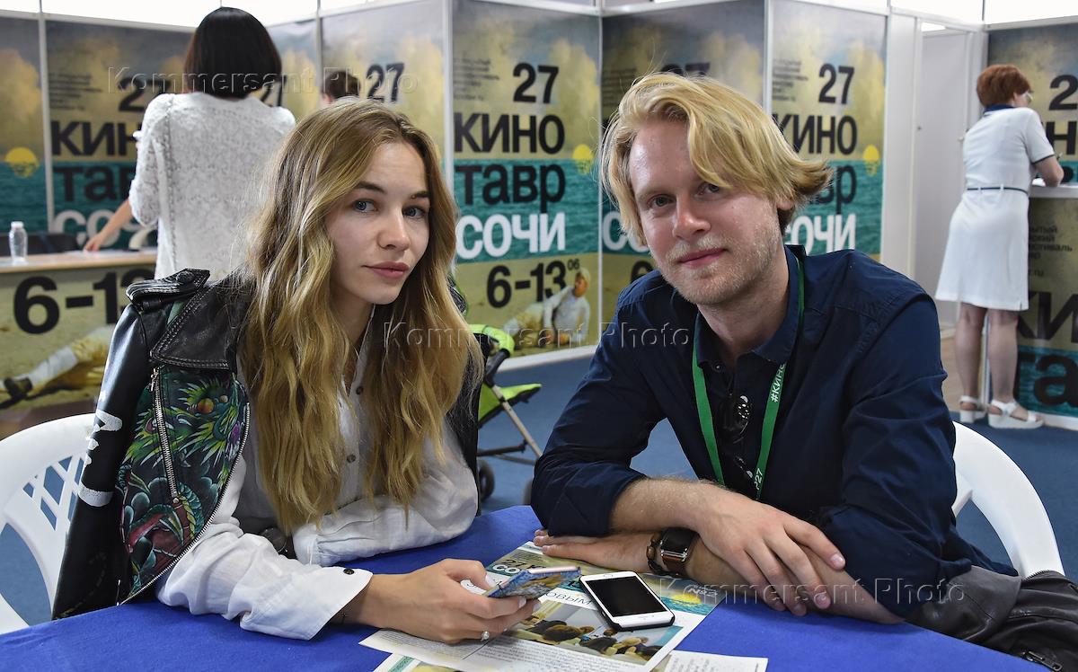 XXVII Открытый российский кинофестиваль (ОРКФ) "Кинотавр" в Сочи. Актеры Егор Корешков (слева) и Анна Цуканова (в центре) во время своего мастер-класса режиссера Жоры Крыжовникова в рамках ОРКФ.