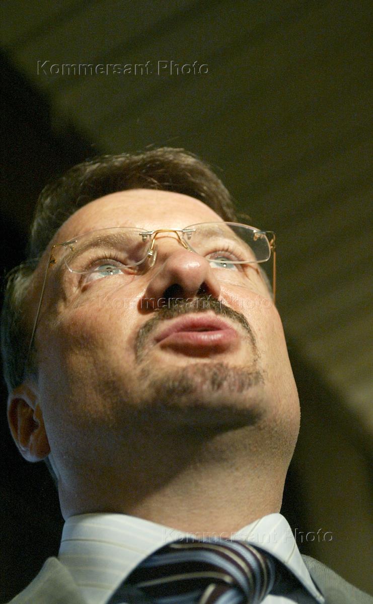 Minister of Trade and Economic Development, German Gref waits for the beginning of the press-conference.