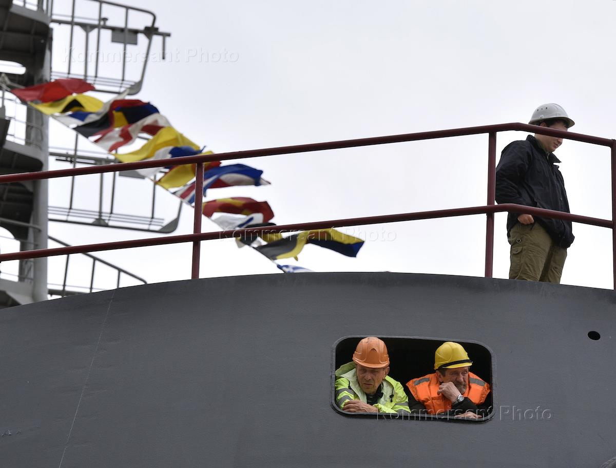 АО "Адмиралтейские верфи". Торжественная церемония спуска на воду ледокола "Илья Муромец" проекта 21180 для Военно-морского флота (ВМФ) России.