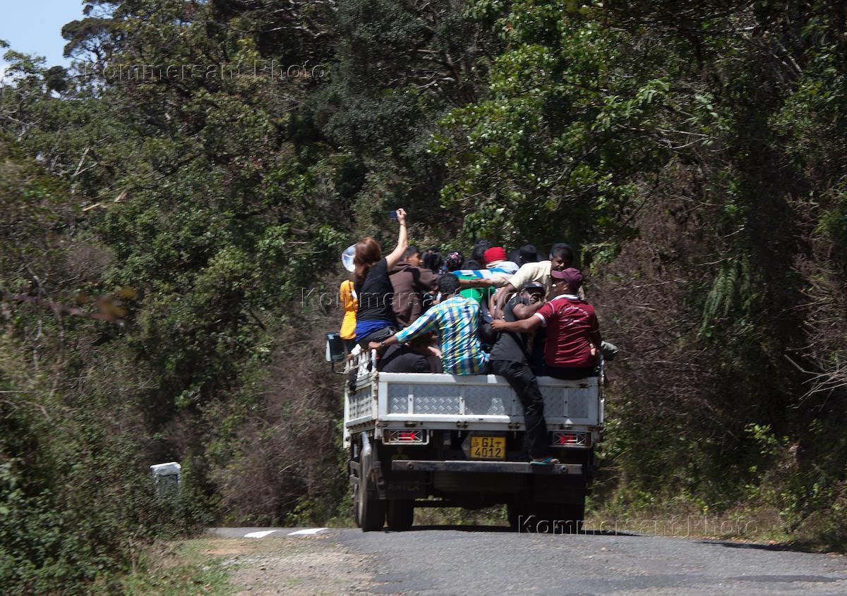 Жанровая фотография. Грузовик везет сборщиков чая и работников чайной фабрики на работу.