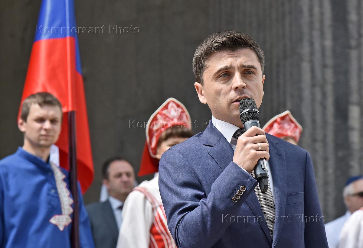 Участники Всекрымской акции "Мы дети твои, Россия" на площади у здания Государственного Совета Республики Крым.
