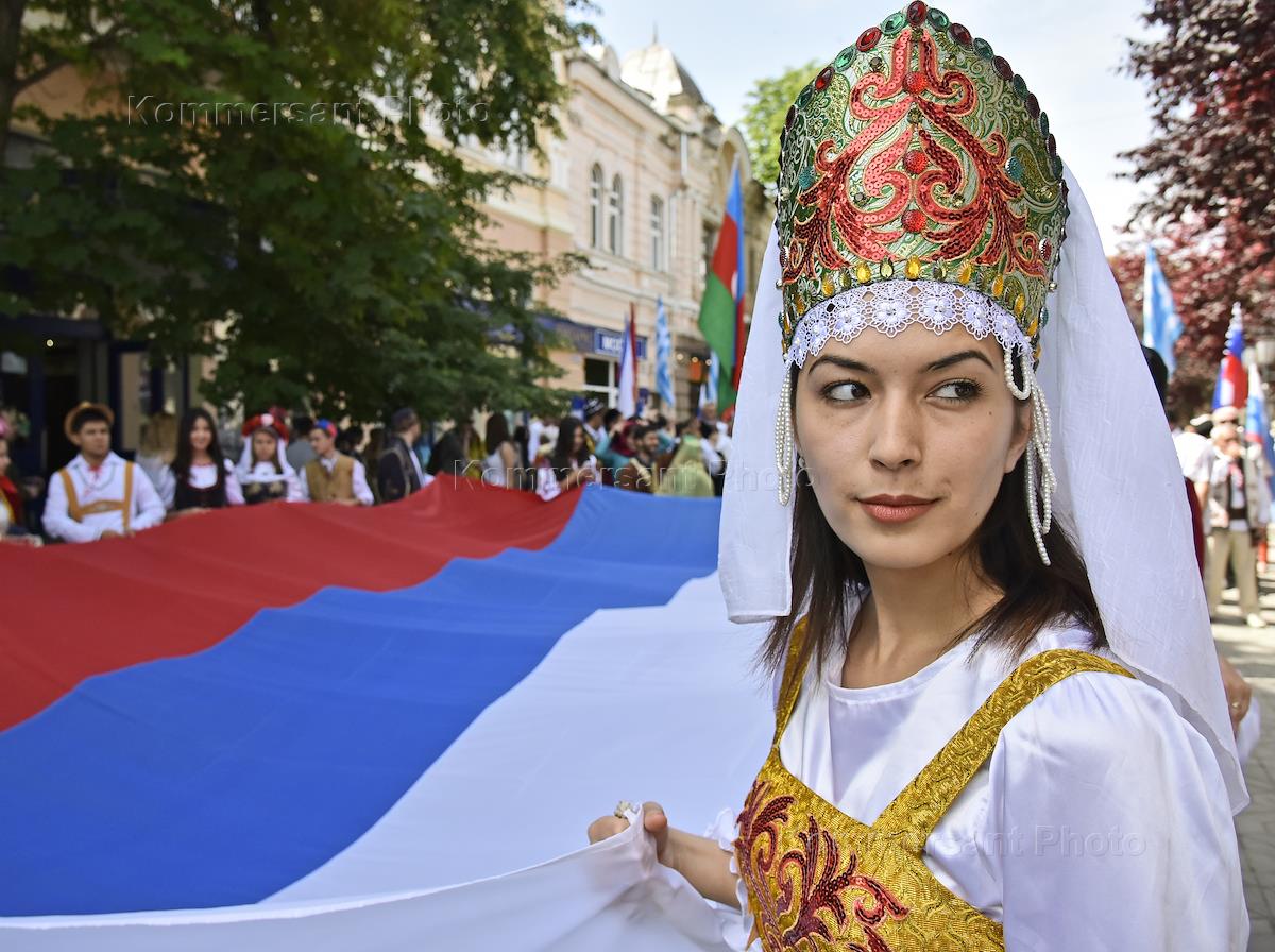Участники Всекрымской акции "Мы дети твои, Россия" на площади у здания Государственного Совета Республики Крым.