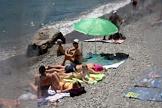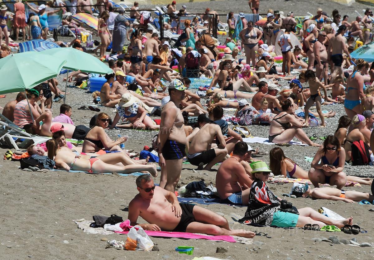 Жанровая фотография. Отдыхающие загорают на пляже в Ялте.