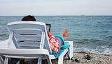Жанровая фотография. Женщина отдыхает на пляже Черного моря.