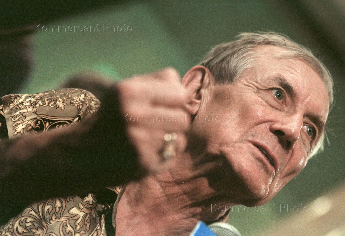 Russian poet Yevgeny Yevtushenko is interviewed at the news conference summoned to preview the events to be held to mark his 70th anniversary.