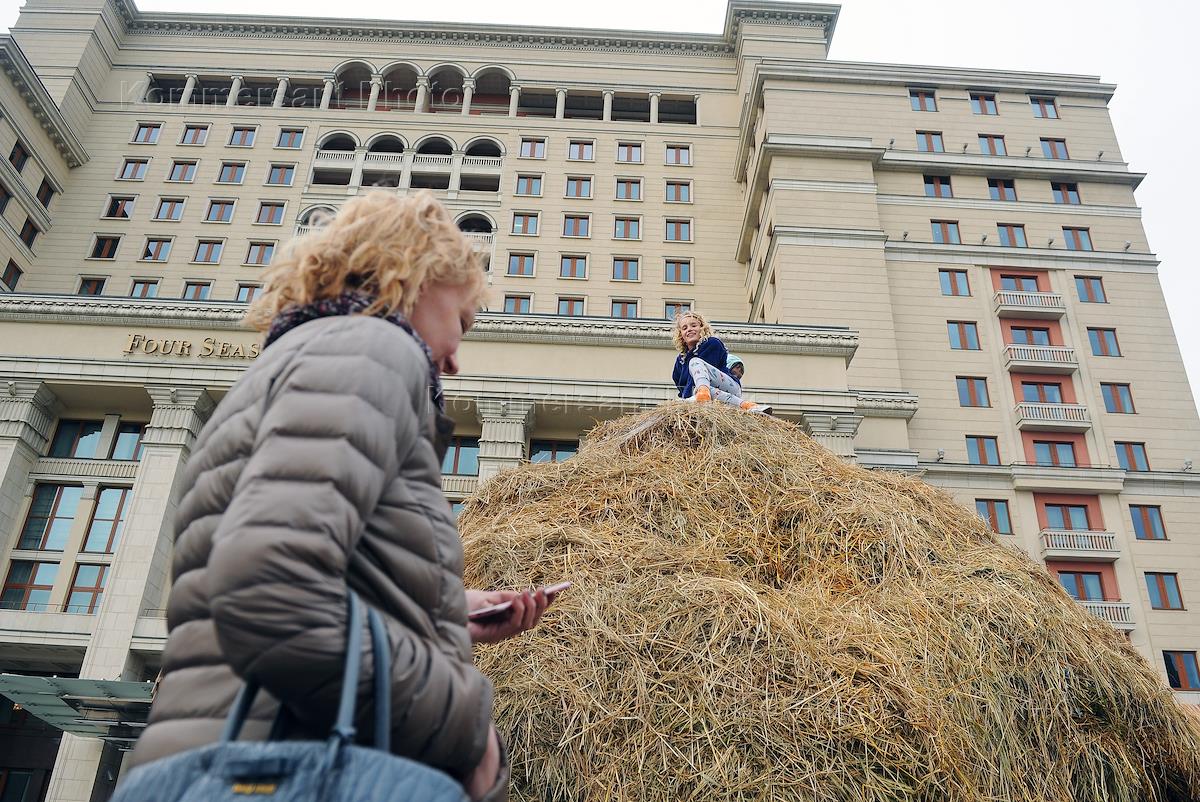 Гастрономический фестиваль "Наш продукт", посвященный традициям Древней Руси на центральных площадях и улицах города. Стог сена.