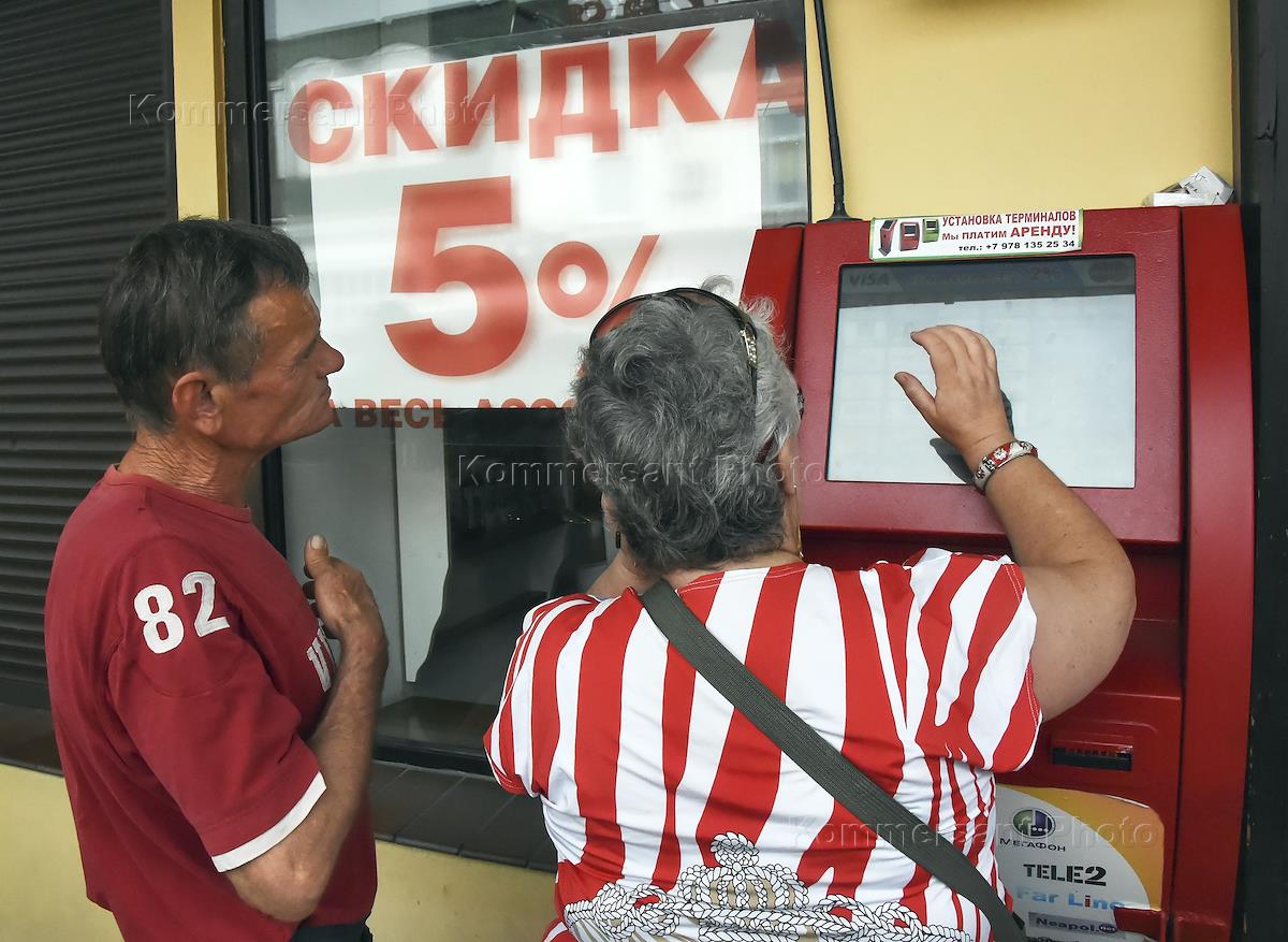 Жанровая фотография. Люди у терминала оплаты сотовой связи.