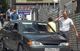 Виды Феодосии. Жанровая фотография. Мужчина у автомобиля и реклама автострахования.