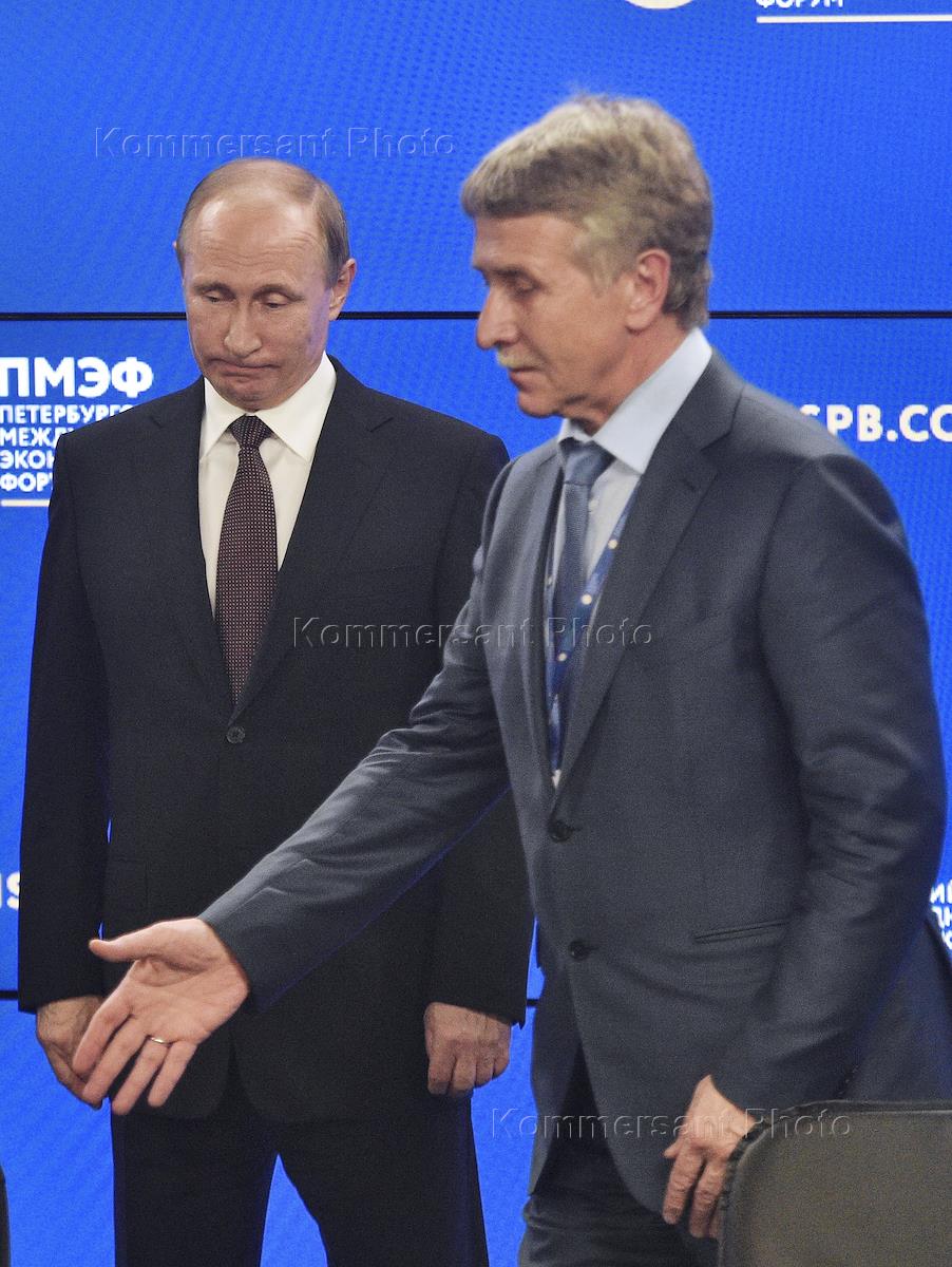 ХХ Петербургский международный экономический форум (ПМЭФ) 2016 в Конгрессно-выставочном центре "Экспофорум". День второй. Президент России Владимир Путин (слева) и генеральный директор, председатель правления российской газовой компании ОАО "Новатэк" Леонид Михельсон (справа) на церемонии подписания документов по итогам российско-итальянских переговоров.