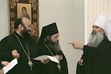 Chairman of the Synode of the Russian Truly-Orthodox Church (RTOC - opposition to the country's mainstream church), Metropolitan Bishop Rafael (right) of Moscow and Kolomna takes part in the RTOC congress held on the premises of the private St. John Clinic in Moscow.