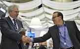 ХХ Петербургский международный экономический форум (ПМЭФ) 2016 в Конгрессно-выставочном центре "Экспофорум". День третий. Генеральный директор компании "Ланит-Терком" Андрей Терехов (слева) и генеральный директор ОАО "РВК" Игорь Агамирзян (справа) на деловом завтраке "Роль IT в реализации национальной технологической инициативы".