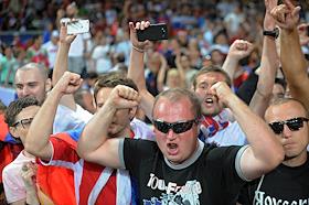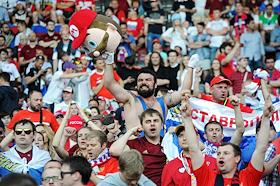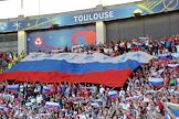 The 2016 UEFA European Championship. The preliminary round of the B group. The match between teamd of Russia and Wales at the stadium 'Municipal'. Fans of the Russian team on stands of the stadium during the match.