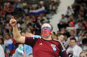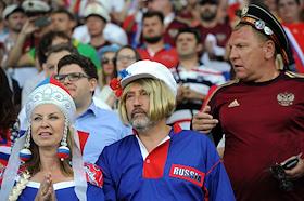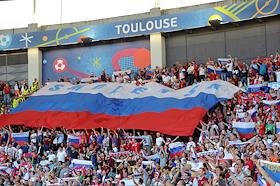 The 2016 UEFA European Championship. The preliminary round of the B group. The match between teamd of Russia and Wales at the stadium 'Municipal'. Fan of the Russian team on stands of the stadium during the match.