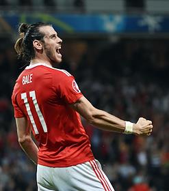 The 2016 UEFA European Championship. The preliminary round of the B group. The match between teamd of Russia and Wales at the stadium 'Municipal'. Football-player of the team of Wales Gareth Bale is during the match.