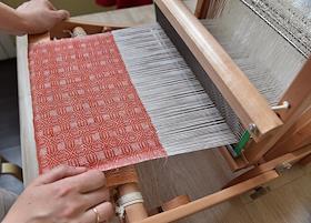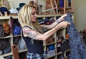 Хозяйка студии "Украса" Мария Штрик за ткацким станком в студии.