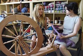Хозяйка студии "Украса" Мария Штрик прядет в студии.