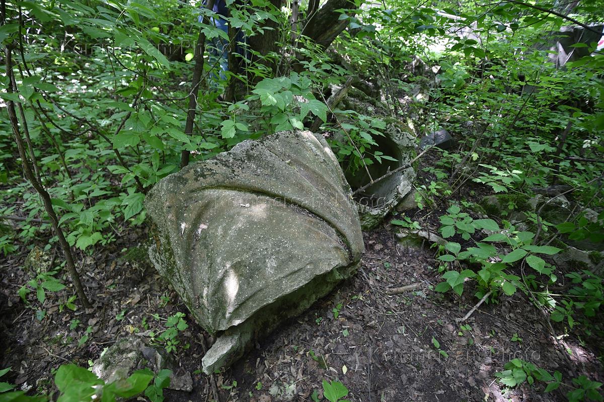 Территория ВДНХ. Жанровая фотография. Бетонная деталь наружного украшения одного из зданий ВДНХ в зарослях кустарника.