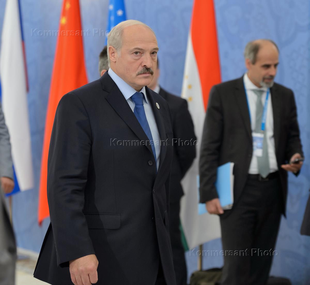Президент Белоруссии Александр Лукашенко (слева) перед началом заседания Совета глав государств-членов Шанхайской организации сотрудничества (ШОС) в расширенном составе, приуроченного к 15-летию создания ШОС.