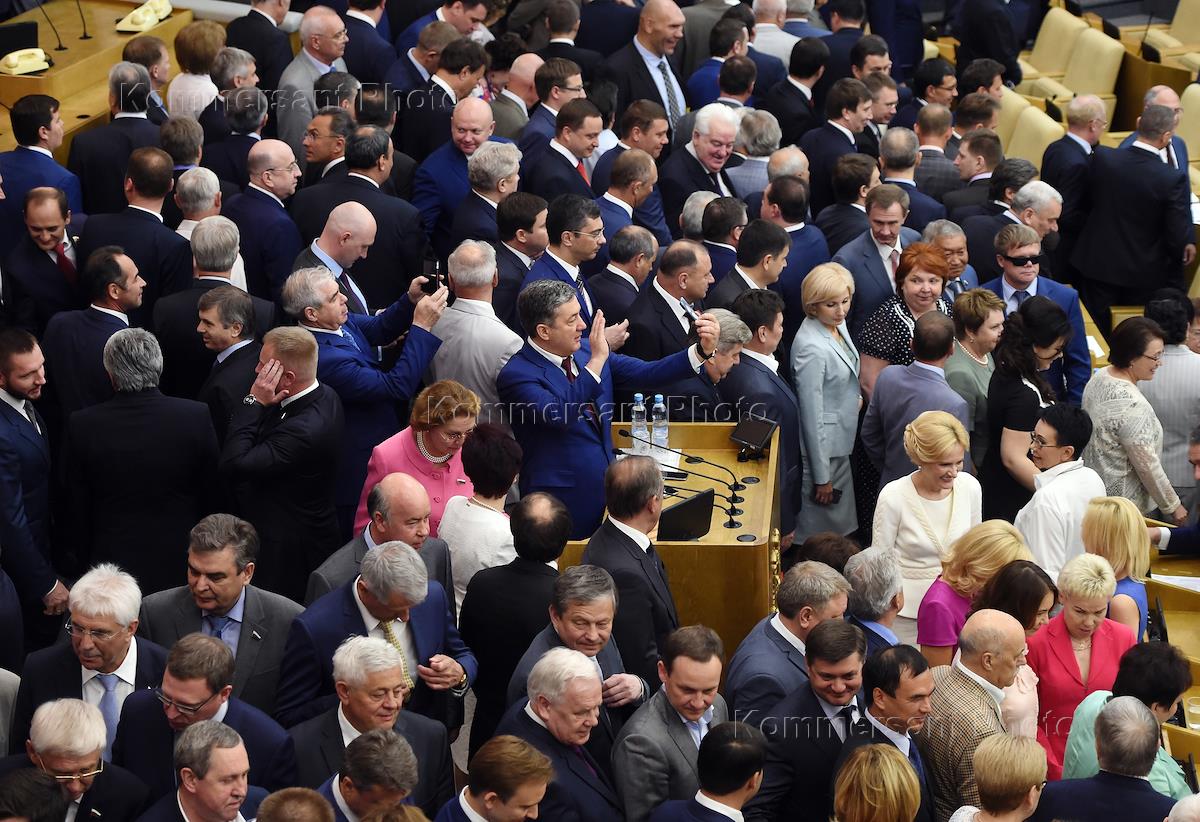 Депутаты Государственной думы (ГД) России после окончания последнего пленарного заседания ГД России шестого созыва, заканчивающей свою работы в этом составе.