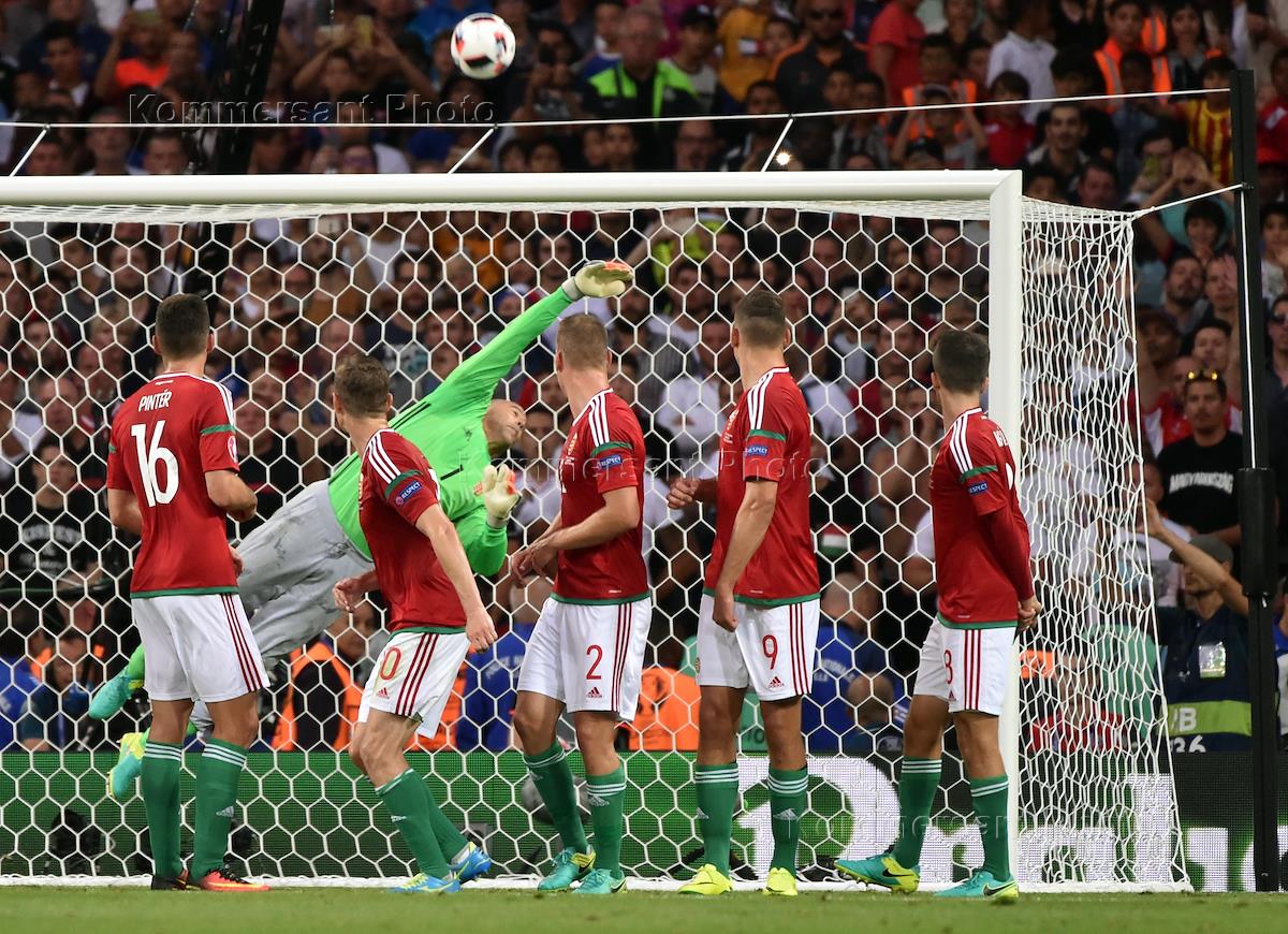 Чемпионат Европы по футболу EURO 2016. 1/8 финала. Матч между сборными командами Венгрии и Бельгии. Вратарь сборной Венгрии Габор Кирай во время матча.