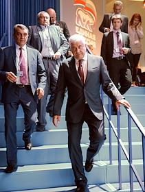 Вице-президент РАН, ректор Московского государственного университета (МГУ) имени М.В.Ломоносова Виктор Садовничий (слева) и заместитель председателя комитета Государственной думы (ГД) России по международным делам Валентина Терешкова (справа) на XV съезде Всероссийской политической партии "Единая Россия".