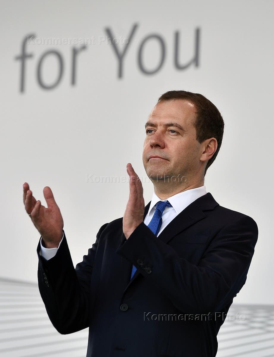 Председатель правительства России Дмитрий Медведев на церемонии открытия завода по производству насосного оборудования компании Wilo в Ногинске.