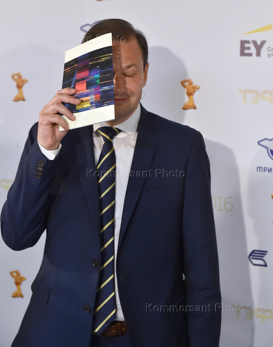 Торжественная церемония вручения телевизионной премии "ТЭФИ 2016" в номинации "Вечерний прайм" прошла в Первой студии телецентра "Останкино". Продюсер Александр Цекало во время церемонии награждения.