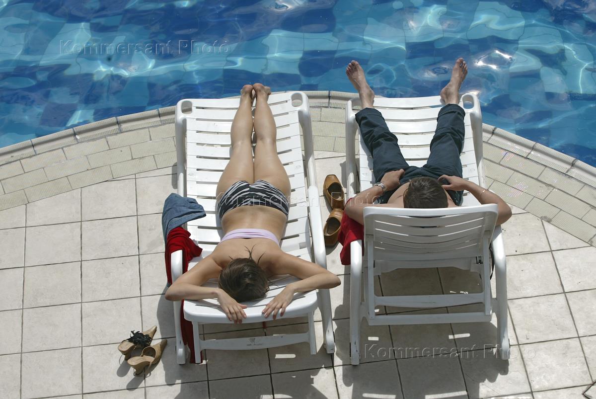 People are getting a sun-tan at yacht club "Vodnik".