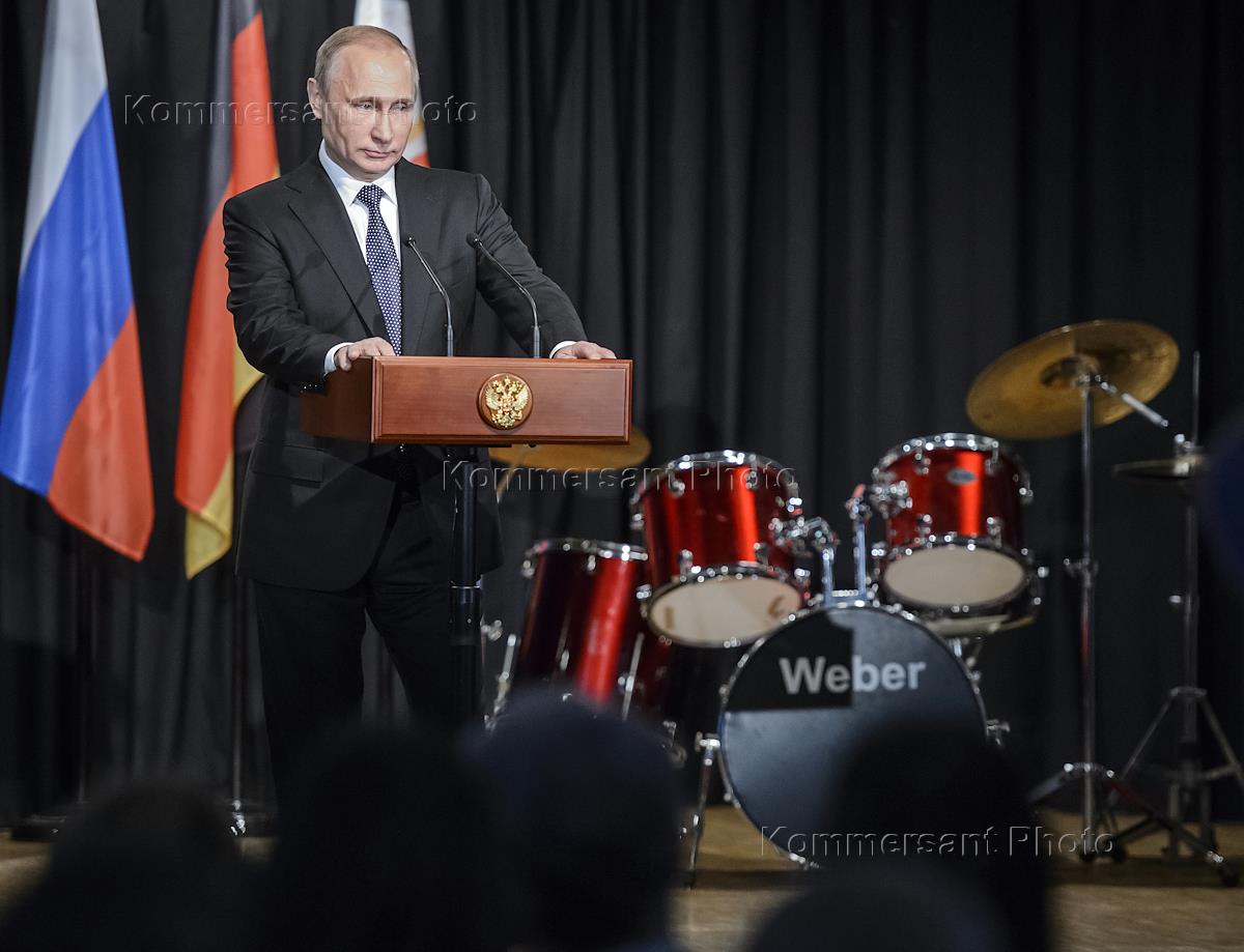 Президент России Владимир Путин на первой встрече в рамках международной программы "Примирение над могилами – работа во имя мира" учеников гимназии ФРГ Бад-Зальцунген, средней школы №12 Ржева и немецкой школы при посольстве Германии в Москве.