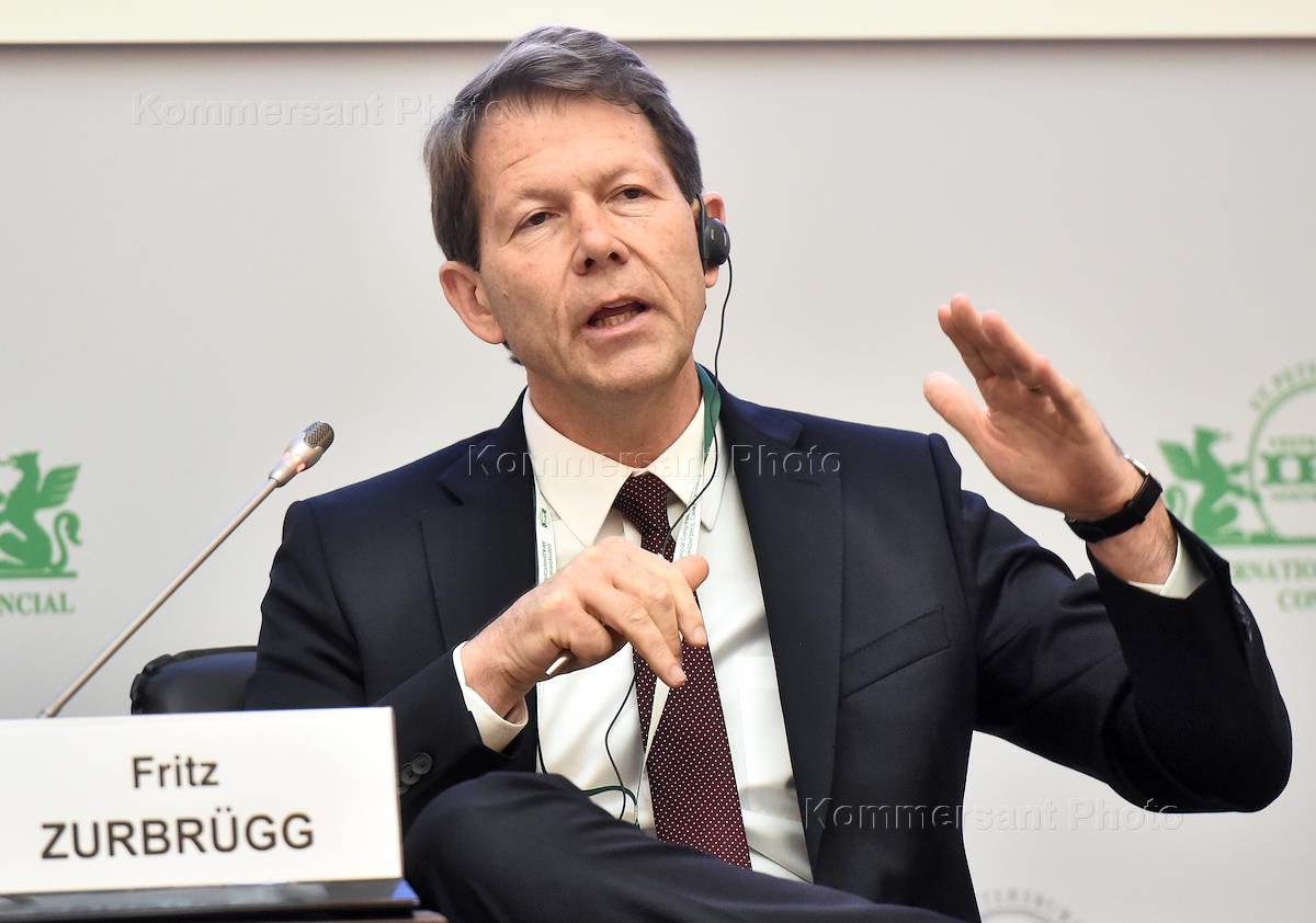 XXV Международный финансовый конгресс. Первый день. Заместитель председателя совета управляющих Национального банка Швейцарии Фриц Цурбрюгг во время пленарного заседания.