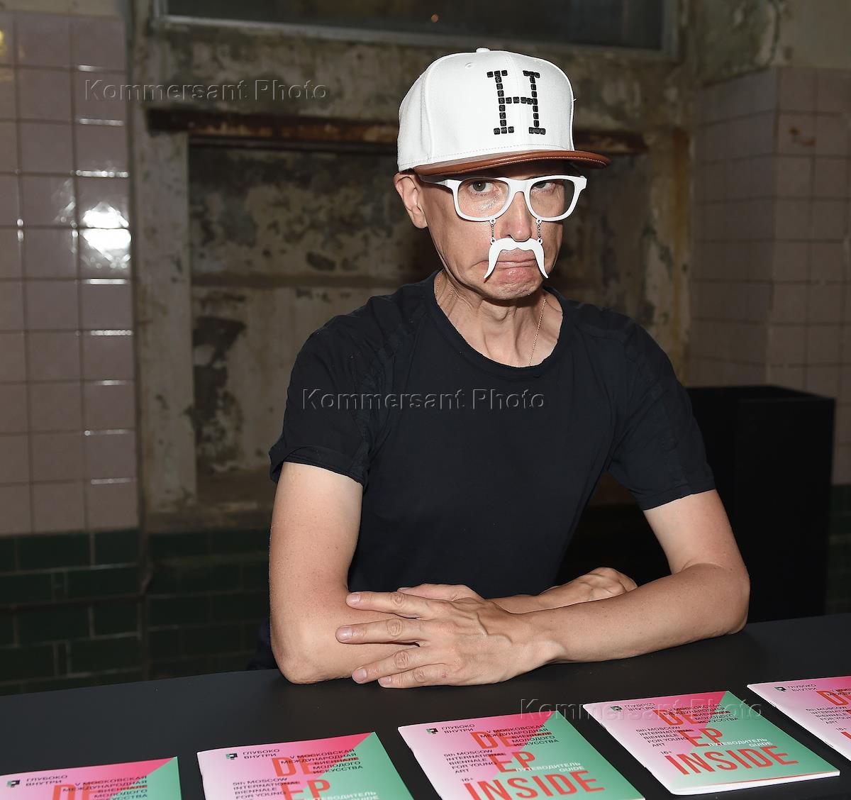 Церемония открытия V Московской международной биеннале молодого искусства на территории "Трехгорной мануфактуры". Модельер Андрей Бартенев на церемонии.