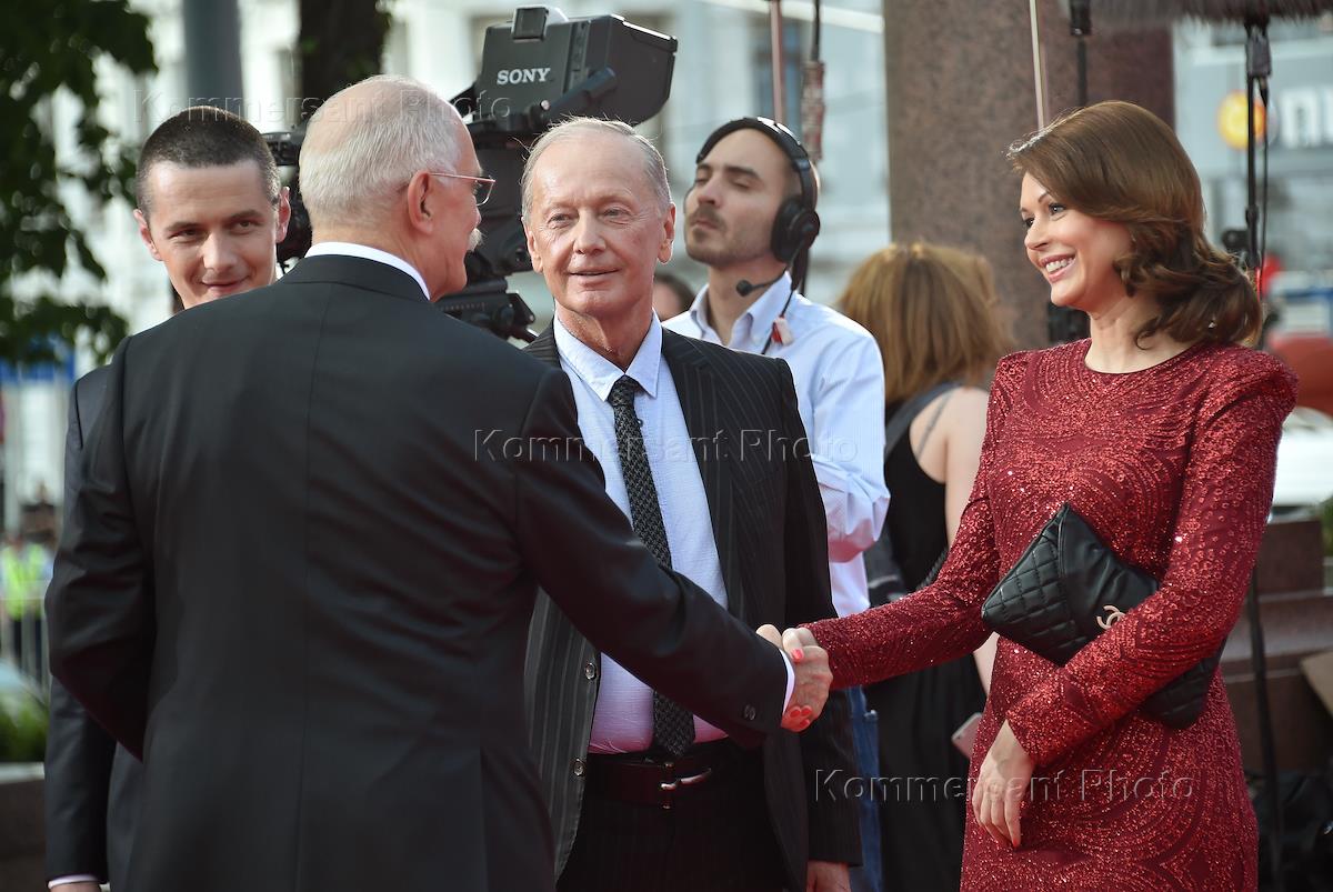 38-ой Московский международный кинофестиваль (ММКФ)-2016. Актер Михаил Горевой (в центре) на церемонии закрытия в концертном зале "Россия".
