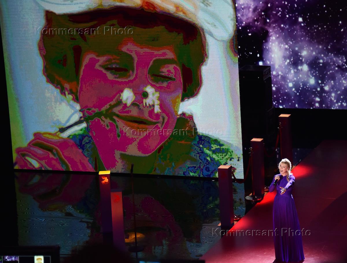38-ой Московский международный кинофестиваль (ММКФ)-2016. Патронесса фонда "Федерация", певица Елена Север во время церемонии закрытия в концертном зале "Россия".