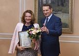 Журналист ИД "КоммерсантЪ" Светлана Сухова (слева) во время встречи председателя Государственной думы России Сергея Нарышкина (справа) с журналистами, аккредитованными при Государственной думе России.