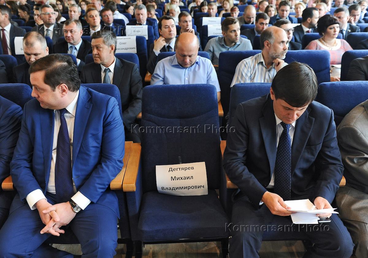 Заместитель председателя комитета Государственной думы России по науке и наукоемким технологиям Михаил Дегтярев (в центре) на 29-м Всероссийском съезде ЛДПР. Съезд прошел в Центральном аппарате ЛДПР.