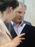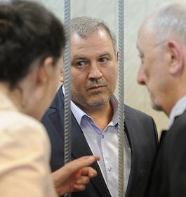 Заместитель директора Спецстроя России Александр Буряков, обвиняемый по делу о хищениях при строительстве космодрома "Восточный", во время заседания в Тверском суде.