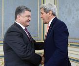 Рабочий визит Госсекретаря США Джона Керри в Украину. Президент Украины Петр Порошенко (слева) во время встречи с Государственным секретарем СШа Джоном Керри (справа).