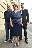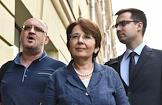 Заместитель председателя гражданского комитета партии "Гражданская платформа" и депутат Законодательного собрания (ЗАКС) Санкт-Петербурга Максим Резник (слева) и представитель партии "Партия Роста" Оксана Дмитриева (в центре) перед рассмотрением вопроса о заверении списков кандидатов партии в горизбиркоме.