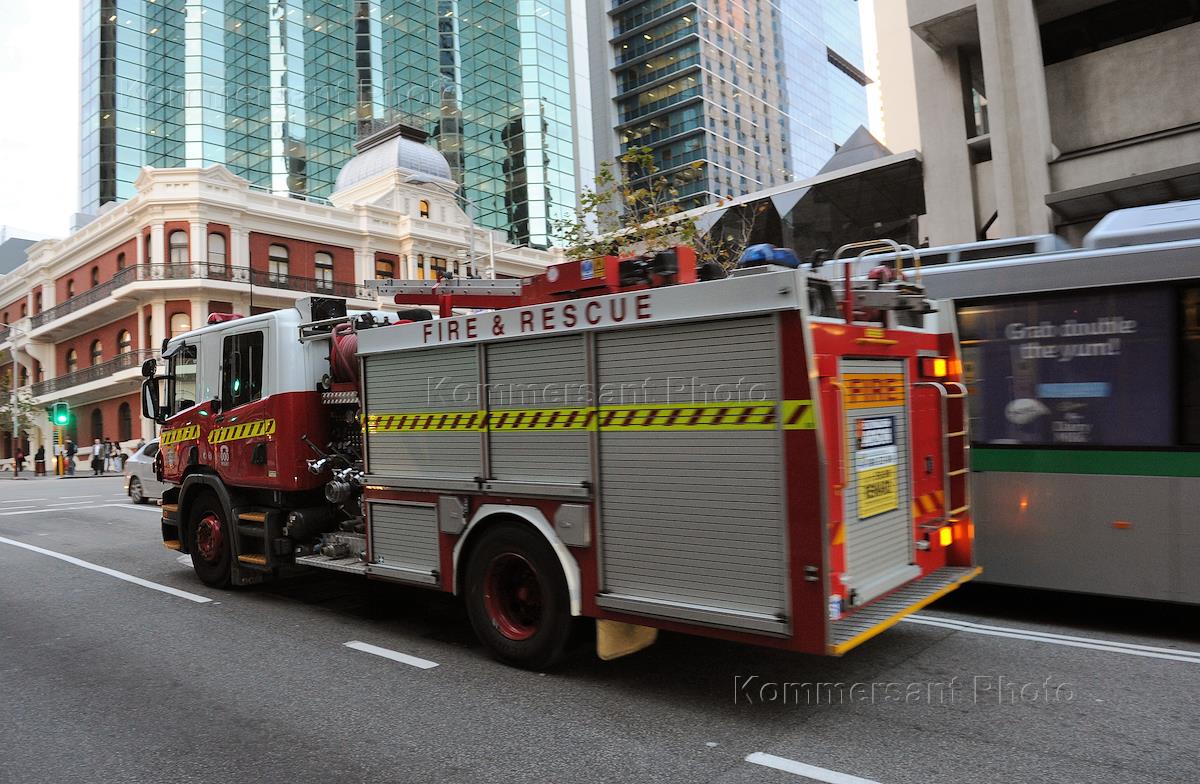 Виды города Перт. Машина пожарной охраны на улице города.