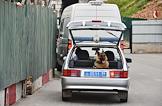 Жанровая фотография. Овчарка в багажнике автомобиля полиции.